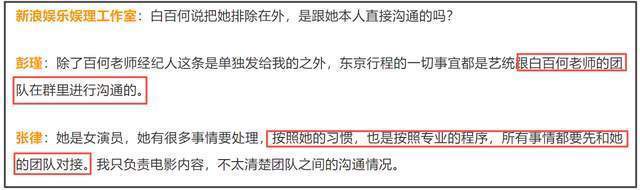 最关键的是,白百何工作室晒了一堆沟通截图,唯独没有晒出片方通知“白姐可以正常回了”的截图。